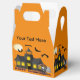 Create a lasting impression with a Haunted House Reaper Gable Favour Box that feature orange background, yellow glowing moon behind a Haunted House with bats flying around. In front of the Haunted House is a grim reaper with a bloody sickle. On the side of the house is a gravestone. Decorative is Happy Haunting. They match our Haunted House Reaper Invitations and party favour tins! Printed in full colour on all sides of this high quality card stock box to coordinate perfectly with your theme! Fill these 5” x 4” x 2.5” boxes with sweet treats or trinkets for your special gift befitting your special guests. Buy in bulk and save!