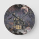 Haunted House | Spooky Full Moon Tree and Bats Round Clock