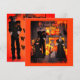 Haunted mansion Halloween Party Invitation featuring Frankenstein, witch, and Edgar Allen Poe standing in front of stone fireplace with roaring Halloween style fire. Laughing pumpkins, monsters, and plenty of candles burning with also a candelabra by artist, Patricia, in cartoon style. Backside features Frankenstein personally inviting you to his party and lines for you to fill in your information. Hope your party will be a great big success.