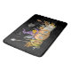 A bath mat with a cute image of a haunted pumpkin house with a big witches hat on top and ghosts and bats flying around.