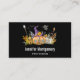 Business cards with a cute image of a haunted pumpkin house with a big witches hat on top and ghosts and bats flying around.