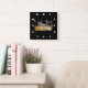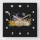 Haunted Pumpkin House with Ghost & Bats Square Wall Clock