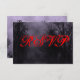A custom response RSVP card template with grungy letters on a spooky Halloween sky with misty trees along a dark haunted road, gothic ravens and a cloudy full moon in a purple mist. Customise It to change fonts, sizing and more, even save your design for later.