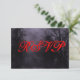 A custom response RSVP card template with grungy letters on a spooky Halloween sky with misty trees along a dark haunted road, gothic ravens and a cloudy full moon in a purple mist. Customise It to change fonts, sizing and more, even save your design for later.