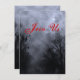 A custom invitation template with grungy letters on a spooky Halloween sky with blue misty trees along a dark haunted road, gothic ravens and a cloudy full moon with grungy letters in red and blues. Click Customise It to change fonts, colours, sizing and more, even save your design for later.`