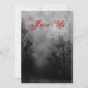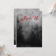 A custom invitation template with grungy letters on a spooky Halloween sky with misty trees along a dark haunted road, gothic ravens and a cloudy full moon in black and white.