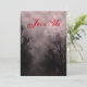 A custom invitation template with blood red letters on a spooky Halloween sky with misty trees along a dark haunted road, gothic ravens and a cloudy full moon. Click Customise It to choose your fonts, sizing and more, even save your design for later.