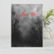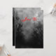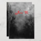A custom invitation template reading Join Us in blood red letters on the front and the back has black grungy script letters and vintage blackletter on a spooky Halloween sky with misty trees along a dark haunted road, gothic ravens and a cloudy full moon in black, white and grey. Customise It to change your fonts, sizing and more, even save your design for later.