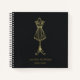 Vintage chic wire dress in gold on a black background with custom gold elegant monogram on the front, and back with white background black wire dress and a stylish bottom border.