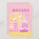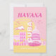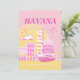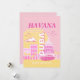 A vibrant and nostalgic illustration of Havana, Cuba, featuring colourful colonial buildings, the iconic Capitolio, and a classic vintage car. Set against a dreamy sunset with birds in flight, the design captures the lively spirit and timeless charm of the city.