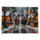 This festive design captures the joyful spirit of the holiday season, featuring an adorable dogs.Nestled in a winter wonderland, complete with a decorated Christmas tree, and beautifully wrapped presents. Snowflakes gently fall, adding a magical touch to the scene, while the vibrant colours of the holiday decorations create a warm and cheerful atmosphere.