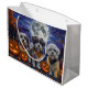 Unleash the spooky spirit with this eerie Halloween design featuring a pack of dogs under a dark, moonlit sky, surrounded by flying bats and glowing pumpkins. Perfect for those who love a touch of frightful fun with their furry friends!