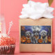 Unleash the spooky spirit with this eerie Halloween design featuring a pack of dogs under a dark, moonlit sky, surrounded by flying bats and glowing pumpkins. Perfect for those who love a touch of frightful fun with their furry friends!