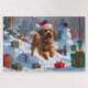 Havanese Running in Snow with Christmas Hat Jigsaw Puzzle