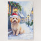 Havanese Snowy Village Walk Santa Hat Christmas Jigsaw Puzzle