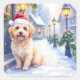 Havanese Snowy Village Walk Santa Hat Christmas Square Sticker