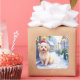 Spread holiday cheer with this adorable Christmas card featuring a Havanese wearing a Santa hat along a festive snow-covered village path. Evergreen garlands, glowing lanterns, and gentle snowfall create a cozy watercolor winter scene perfect for dog lovers. The blank interior provides ample space for personalized messages, making it ideal for gifting, seasonal correspondence, and breed-themed stationery collections.