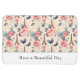 A flexible magnet with the saying "Have a beautiful Day". Designed with an elegant pattern. Pink roses, blue-grey butterflies and an Eiffel tower. A French themed pattern.