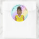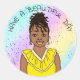 Have a Beautiful Day! Folk Art Girl Classic Round Sticker