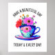 Inspirational quote and pretty graphics of vintage teacup full of pink flowers.