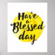 Modern Calligraphy Design in Black letters, "Have a Blessed Day" with beautiful yellow-gold circular watercolor stain in background.