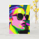 Birthday card. Colourful abstract art with acrogenous person in sunglasses.