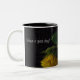 Sunflowers and green foliage. Black background. "Have A Great Day" text on side of mug.
