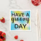 Decorate your party table with these Have a Groovy Day Tie Dye Birthday napkins. It features a blue and yellow tie dye inspired pattern with cute script fonts. Personalise by changing "Groovy" to your prefered adjective.