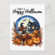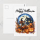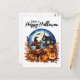 Have a Happy Halloween Cute French Bulldog with Jack-O-Lanterns and Haunted House Postcard