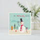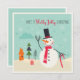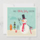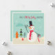 This holidays design features a happy snowman holding a candy cane walking stick with a house and Christmas trees in the background. The text "Have a holly jolly Christmas" written in fun modern hand-lettered script. On the reverse is the editable message "Wishing you and your family a wonderful Holiday Season!" with your personalised name below