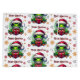Adorable cartoon frog in Santa hat holding a Christmas gift holiday gift bag.