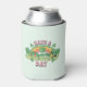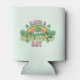 Can cooler with a St. Patrick's Day themed image. A retro grunge style design which says: Have a lucky day. With a colourful rainbow behind. Words written in a fat rounded retro style vibe. Pink and green colours.