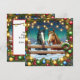 Pretty Christmas card with the graphics of two horses standing behind a wood ranch fence decorated in Christmas lights. These horses are done in a cartoon comic book pop art style. Add your own personalised holiday message.