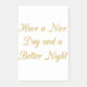Introducing the "Have A Nice Day And A Better Night Art Print," a charming piece designed to spread positivity and warmth. This artwork features an uplifting phrase that resonates with friendly wishes, making it a delightful addition to any space.