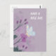 A purple card with flowers and a butterfly. Perfect for spring. You can change the text.
