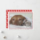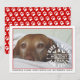 Have a warm and fuzzy holiday red dog pet Christmas photo card. It displays the text "Have a warm and fuzzy holiday" forming a circle accented with two dividers, deer and tree and a photo of your beloved dog. Around it there is a red border. The back includes a paw pattern in white on red.