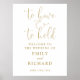 This gold elegant script wedding welcome sign can be personalised with all your special wedding day information. Designed by Thisisnotme©