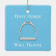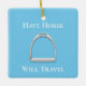 "Have Horse Will Travel" Stirrup Iron on Blue Ceramic Ornament