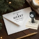 Give your gifts and holiday mail a polished, personal touch with this minimalist “Have Yourself A Merry Christmas” rubber stamp. The clean modern typography and delicate snowflake accent create a timeless look suitable for cards, envelopes, gift tags, bakery packaging, and holiday crafts. Customize with your family name to create a festive signature you can use year after year.