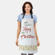 The classic song lyrics decorate this holiday apron. Set against a white background, with the words Merry Christmas in a large, red script font. The remains text is in a green type font. At the bottom of the apron there is a gold coloured contemporary scroll Christmas tree border.