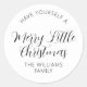 Have Yourself A Merry Little Christmas Custom Family Name Classic Round Sticker. Customisable black typography on white shown as Have yourself a Merry Little Christmas The Williams Family. All Text, fonts, and colours are customisable. We invite you to visit our Zazzle store, GJ Design Co, for matching products and more.