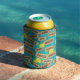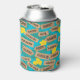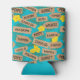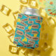 Super cool can coolers featuring a graphic pattern of Hawaiian beach names on signposts. Alongside yellow hibiscus flowers, and palm leaves, on a bright blue background. Great idea for beach and pool parties, or for anybody who love Hawaii and its amazing beaches.