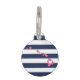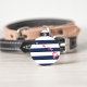 Let your furry friend show some home state pride with this cute Hawaii ID tag. Design features a white silhouette map of the state of Hawaii in pink with a white heart inside, on a preppy navy blue and white stripe background. Add your pet's name and contact information to the back in white lettering on a pink background.