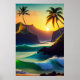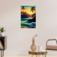 This artwork is designed in the vintage screenprint style of the Works Progress Administration (WPA), which was popular in the United States during the 1930s and 1940s. Using state-of-the-art technology, this poster is a beautiful example of vintage screenprint design, combining nostalgic elements with modern techniques to create a stunning work of art. The use of bright colours and the golden hour lighting add warmth and depth to the image, making it an inviting and eye-catching piece.