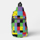 Do you like a Hawaii? This fun sling bag has a pop art pattern of the US state of Hawaii done in yellow, green, blue, red, black and purple.