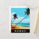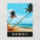Hawaii carte postale. Palm trees on the Hawaiian coast with ocean behind. Illustration, travel poster in vintage style