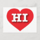 This postcard features a vibrant red heart containing the bold, white, upper case letters HI, the official abbreviation for Hawaii, the aloha state. The reverse side of the card is blank, awaiting your handwritten sentiments or customised text.