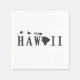 This simple states themed party napkin design features the name Hawaii in a bold all capital letters font with the letter A replaced by the silhouette outline map shape of the state filled in with a solid black background. These Hawaii paper napkins are great for any Hawaiian throwing a party.