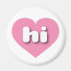 This magnet features a vibrant pink heart containing the bold, white, rounded lower case letters hi, a playful abbreviation for Hawaii, the aloha state.