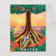Vintage Hawaii travel poster image depicting a mermaid under a tree with a colourful sunset in the background